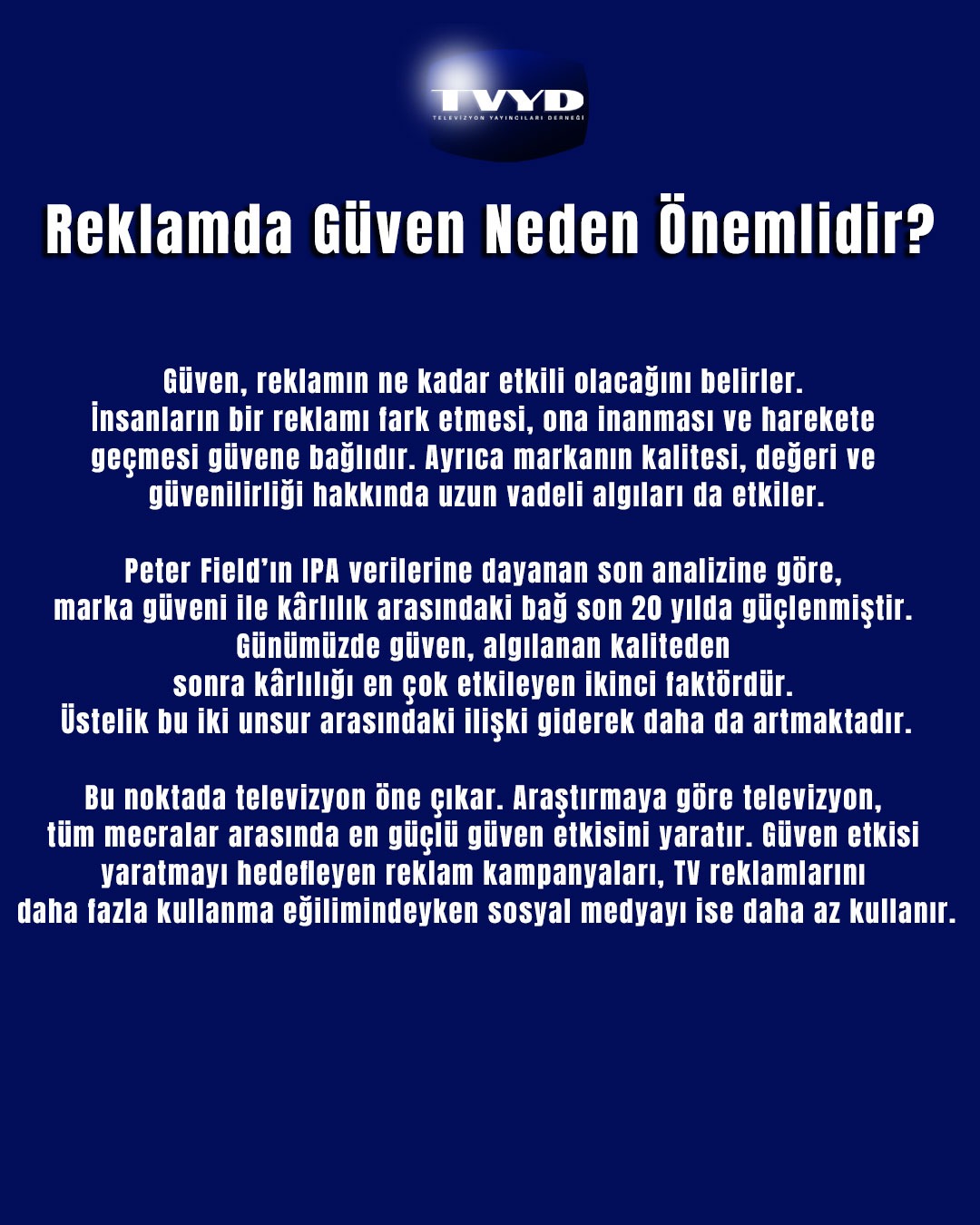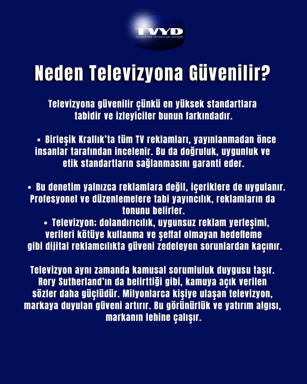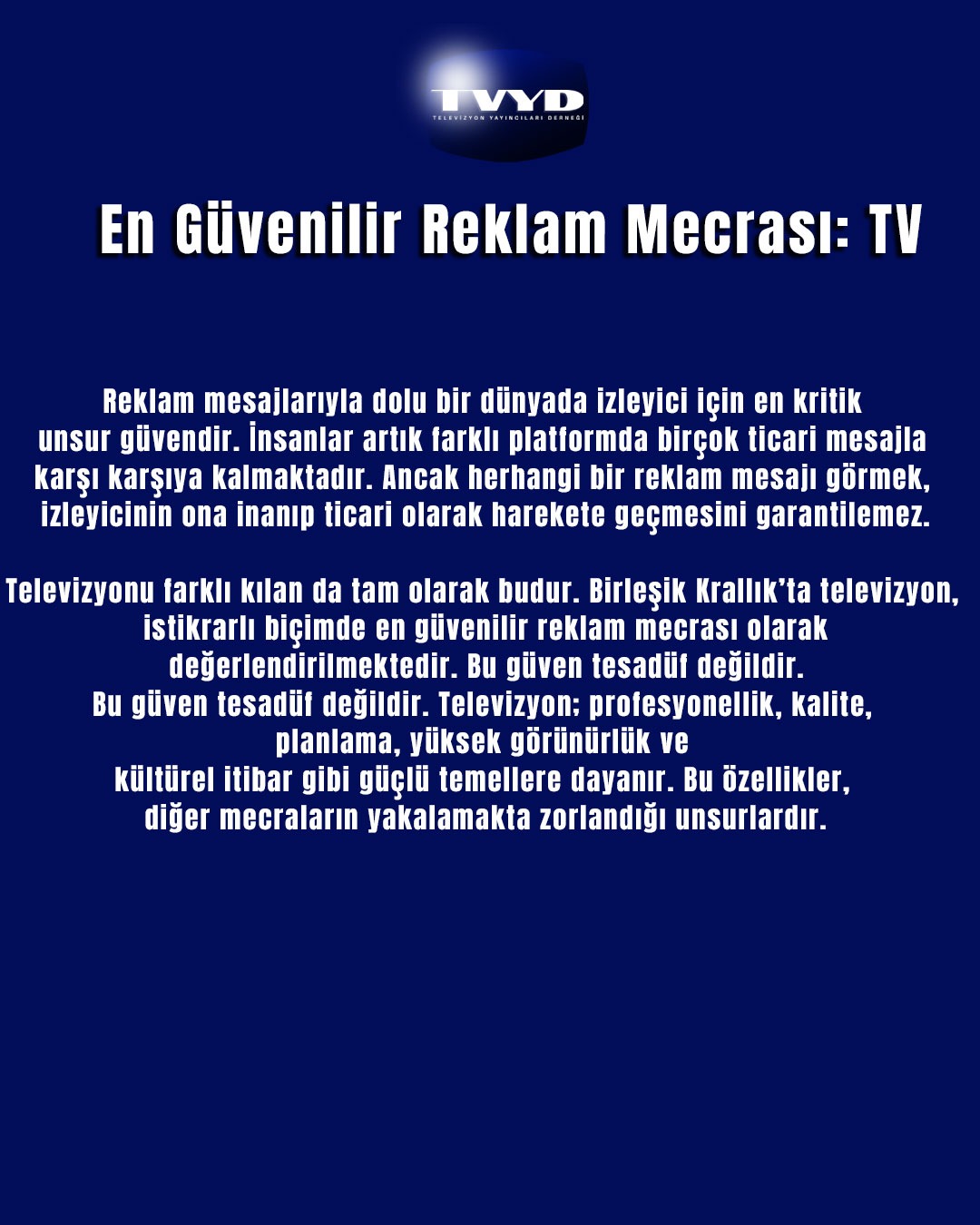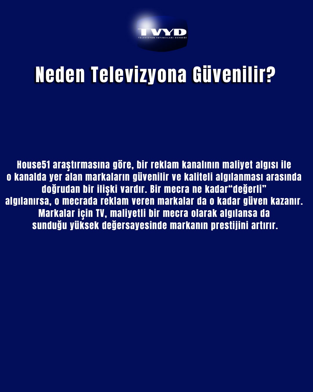 Unutulmamalıdır ki televizyon kanallarımız ülkemize yatırım ve istihdam sağlamaktadır. İstatistiklere göre Türkiye'deki en güvenilir mecra televizyondur.