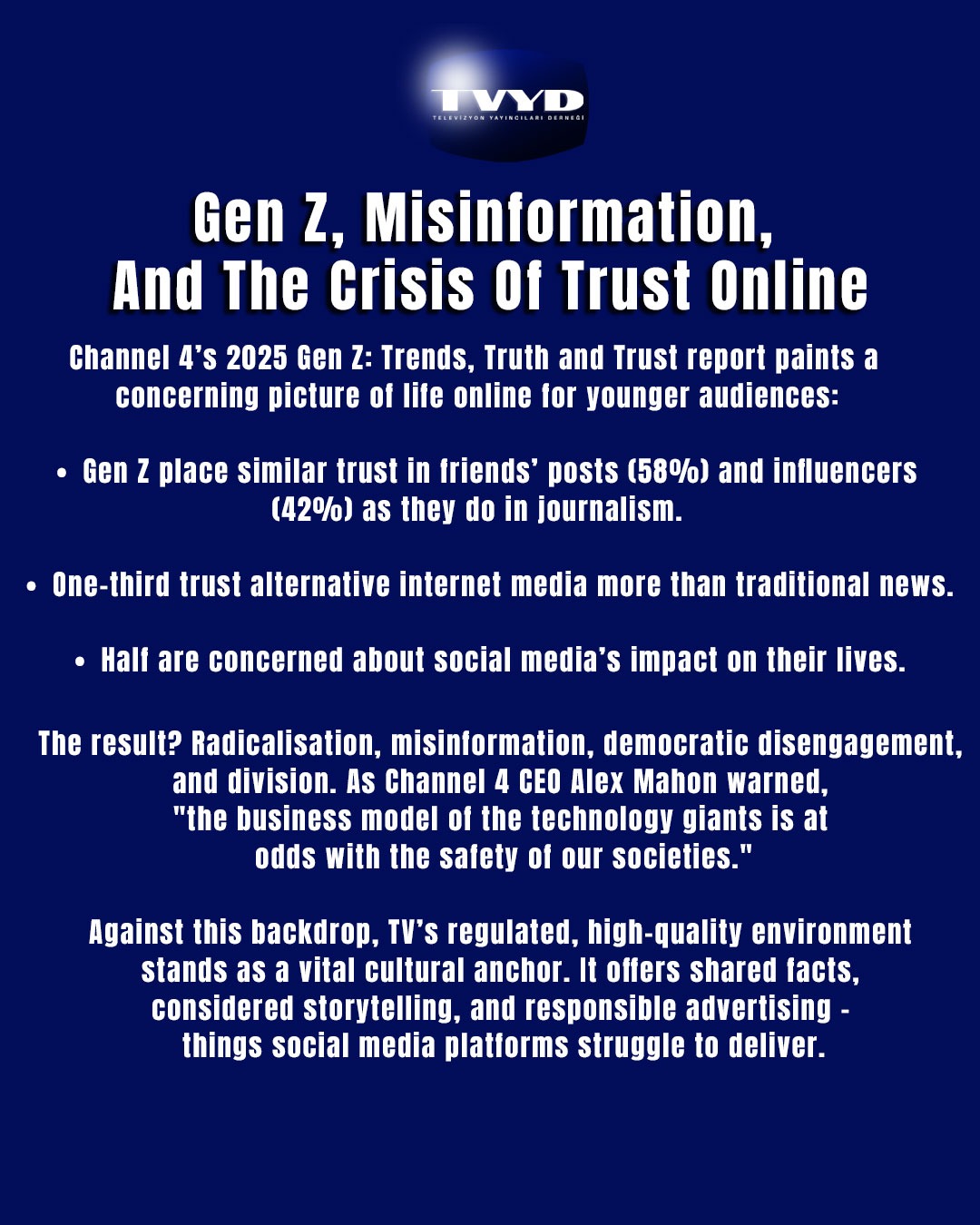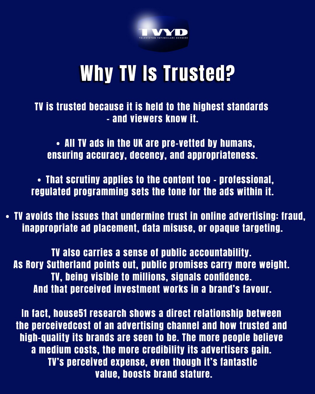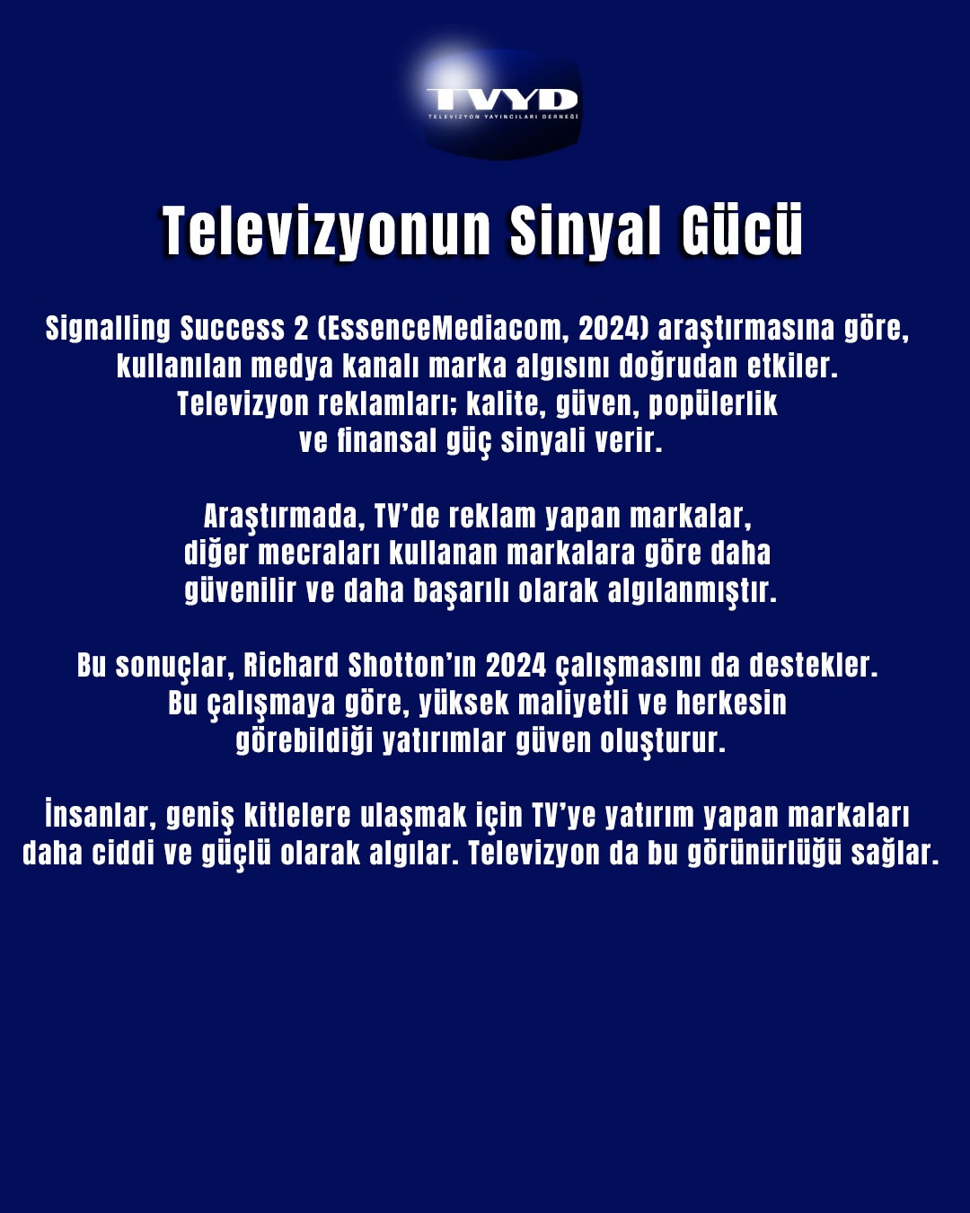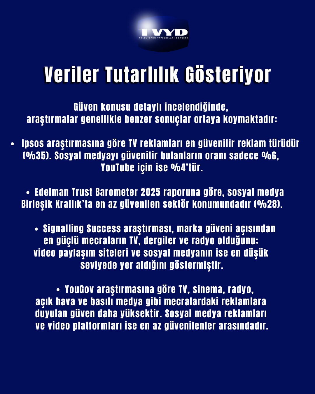 Unutulmamalıdır ki televizyon kanallarımız ülkemize yatırım ve istihdam sağlamaktadır. İstatistiklere göre Türkiye'deki en güvenilir mecra televizyondur.