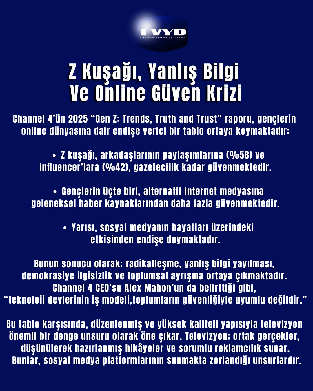 Televizyon yayıncılığı, uzun yıllardır ülkemizde toplumsal sorumluluk bilinciyle faaliyet göstermekte; denetim mekanizmaları ve yayın ilkeleri doğrultusunda içerik üretmeye devam etmektedir. Bu çerçevede, tüm medya mecralarının ortak bir hassasiyetle hareket etmesi ve çocukların korunmasını önceleyen bir anlayışın güçlendirilmesi büyük önem taşımaktadır.